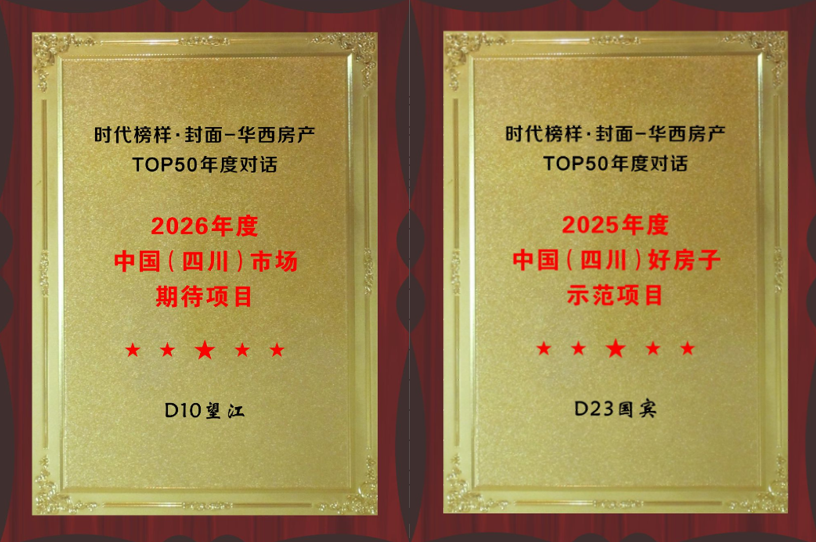 同时,D23国宾项目荣获“2025中国(四川)好房子示范项目”,D10望江项目荣获“2026年中国(四川)市场期待项目”。